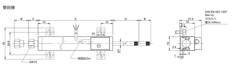 内置弹簧、自动复位
